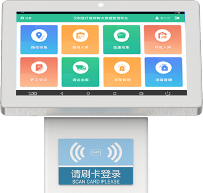 医疗单位的各类科室、暂存点使用。 集身份识别读卡、收集、扫码、打印、语音、实时上传等 功能的高智能操控面板。